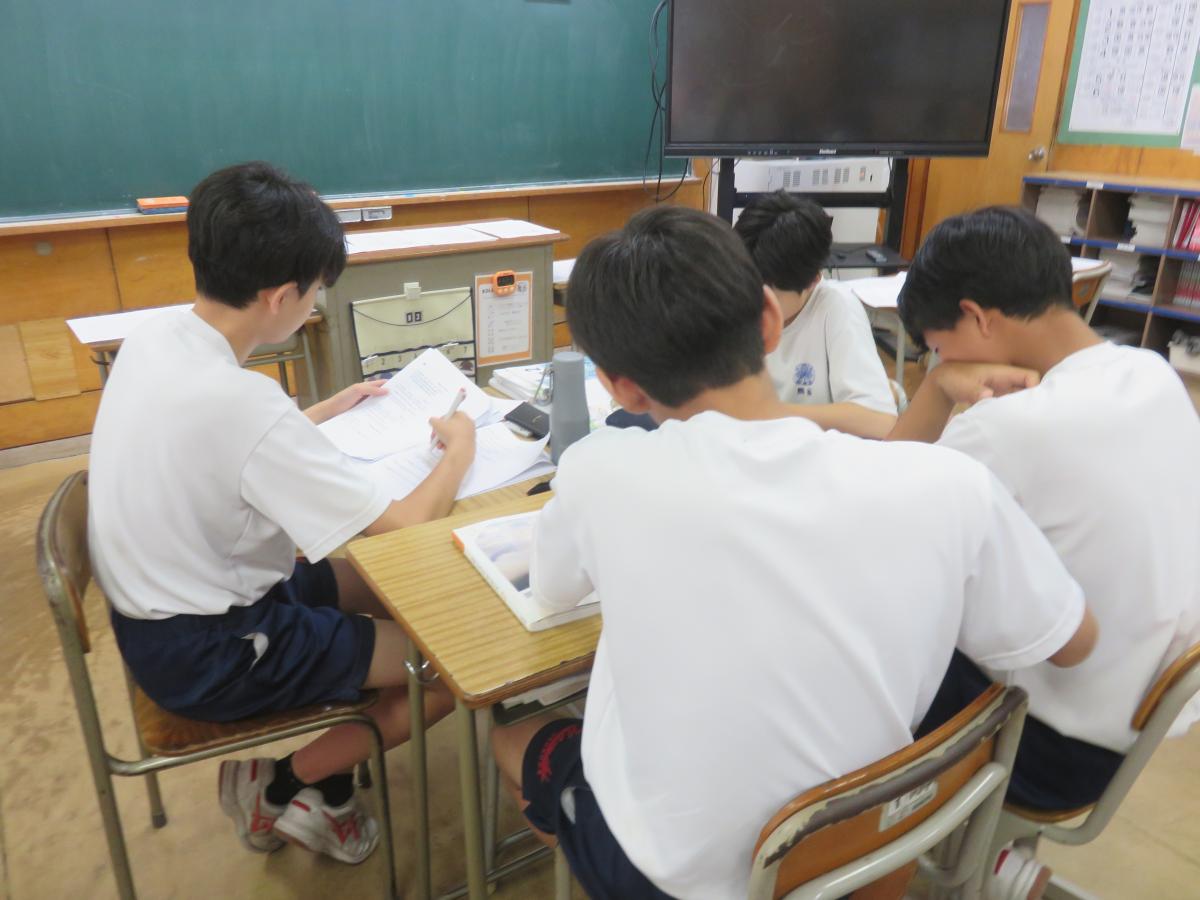 7・8年生はつくば市新人戦で3分の2程度の生徒しか学校に残らないので、授業は進めずプリントや道徳的映画、読書などをしながら生活しました。生徒同士で教え合う姿も見られました。明日も新人戦があるので、各部活動には頑張ってきてもらい悔いの残らないようにしてほしいです。