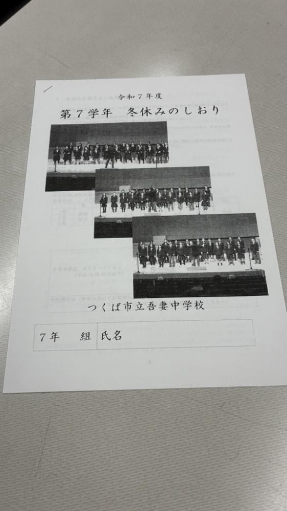 冬休みまで残り1日。7年生では、みんなでしおりを読み合わせして、冬休みをもっと楽しく有意義に過ごすためのポイントを確認しました。みんなが楽しい冬休みを過ごせるように、今から少しずつ準備をしておきましょう。