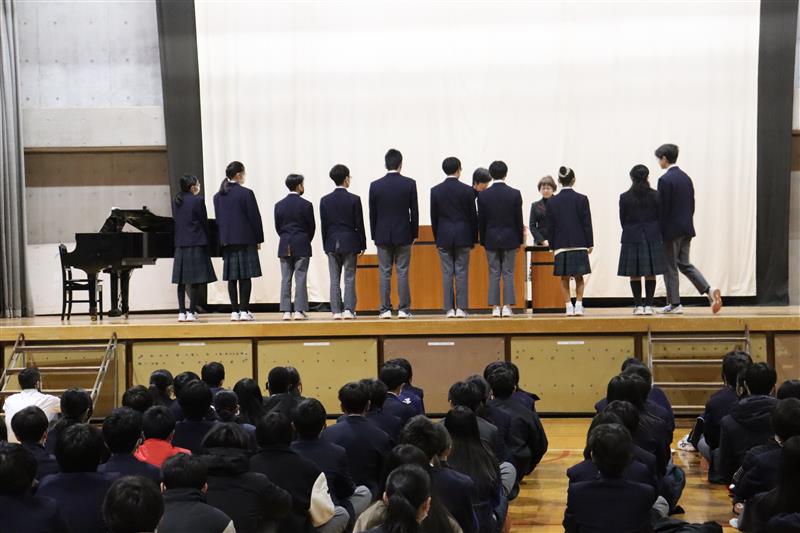 本日、生徒会任命式がありました。旧生徒会役員のみなさん、これまでの精力的な活動、ありがとうございました。新生徒会役員のみなさん、旧生徒会役員の意思を引き継ぎつつ、新たな吾妻中を築いてください。