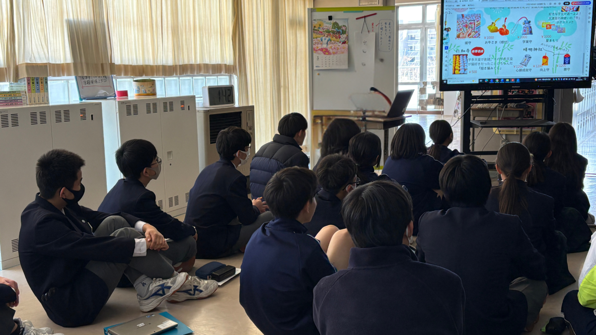 本日、8学年は修学旅行に向けて計画を立てる活動しました。 生徒が自作のポスターを使って、京都のおすすめスポットやグルメをプレゼンしていました。