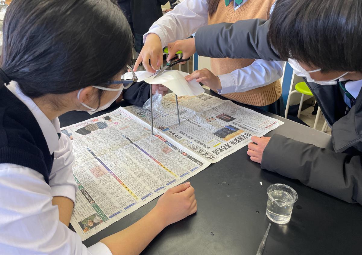 本日の7年理科では、小麦粉でマグマの粘り気を再現する噴火実験を行いました。生徒たちは水の量を工夫して粘度を変え、噴火の様子や山の形の違いを熱心に観察しました。実験結果を実際の地形と結びつけて考える姿がどのグループでも見られました。いよいよ年度末が近づいてきました。学習の方も総まとめに向かって、みんな頑張っています。