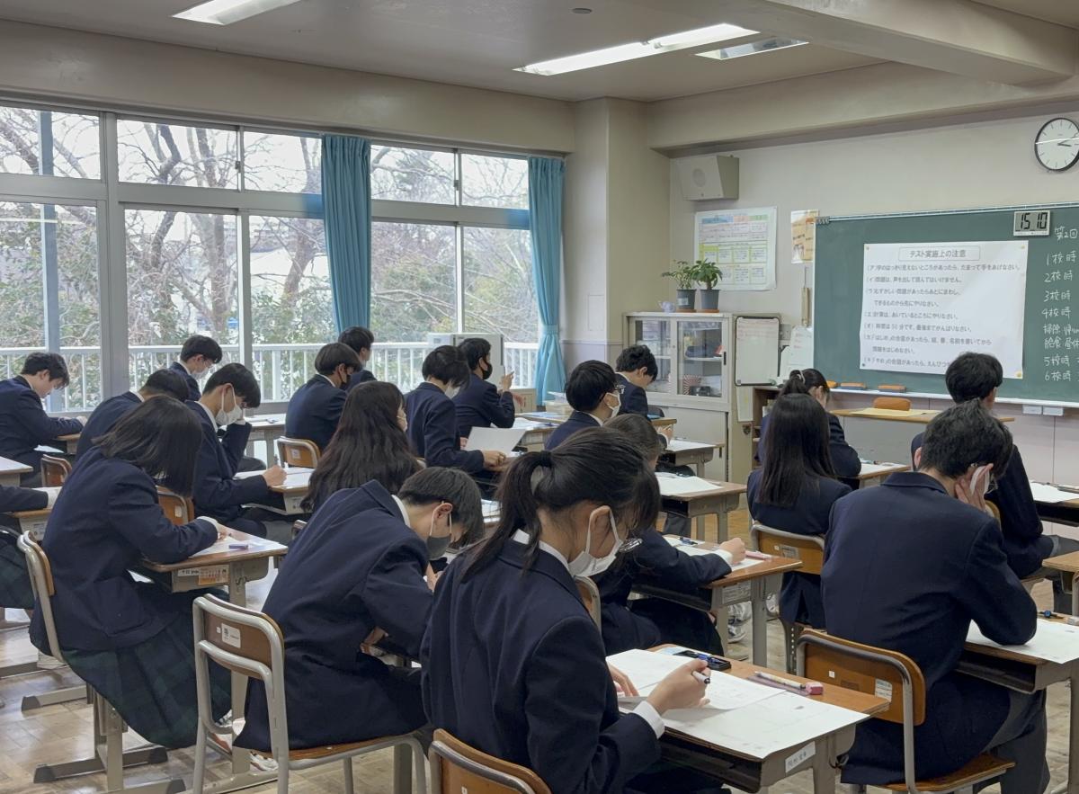 7、8年生では、実力テストが実施されました。8年生の教室では、友達と問題を出し合いながら直前までテストの準備をしていました。