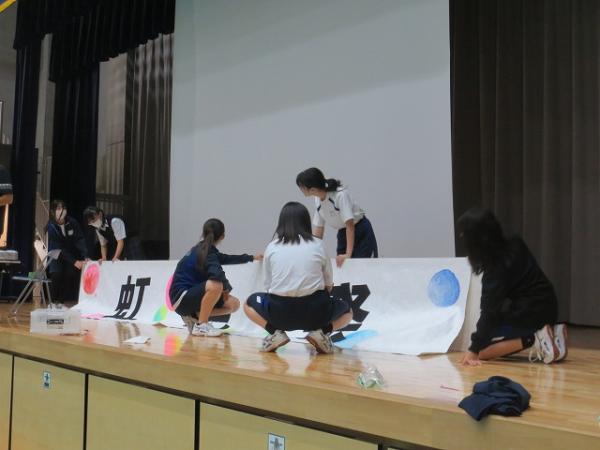 いよいよ明日が第3回虹色祭です。5時間目はみんなで会場準備です。各クラスの発表、文化部の発表、英語プレゼンテーションの発表、ダンス発表、そして作品展示と充実した内容となております。保護者の皆様、どうぞ楽しみにしていらっしゃってください。※「カテゴリー 学校からのお知らせ」をクリックしていただきますと、掲載されている他の写真もご覧になれます。
