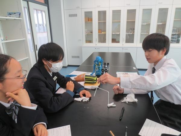 この季節になると、静電気を感じて思わず手を引っ込める場面があります。今日の理科では、その静電気について調べていました。ストローAをティッシュペーパーやフェルトでよくこすり、ストローBに近づけてみました。するとストローBが動いた。「おぉ~」と生徒たちの声。「こする」ということがポイントということがわかったようです。※「カテゴリー 学校からのお知らせ」をクリックしていただきますと、掲載されている他の写真もご覧になれます。