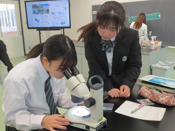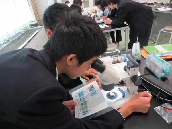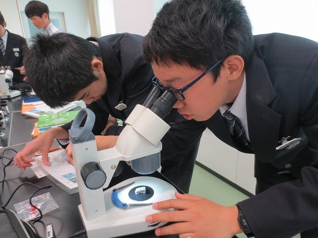 理科室では、7年生が熱心に顕微鏡を使って火成岩の観察を行っていました。石英、長石、黒雲母等、観察したらスケッチをしていました。
