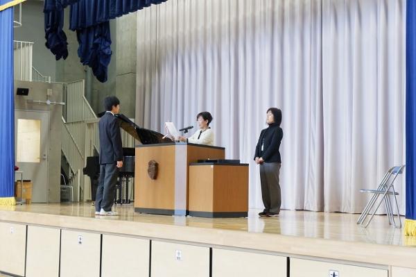 本日は今年度最後の登校日でした。表彰式と修了式を実施しました。整然と並び静かに開式を待つ、7・8年生。素晴らしい返事に集中した話を聴く態度、どれをとってもこの1年間の成長を感じさせるものでした。保護者の皆様には大変お世話になりありがとうございました。来年度もどうぞ本校の学校教育への御理解と御支援をどうぞよろしくお願いいたします。※「カテゴリー 学校からのお知らせ」をクリックしていただきますと、掲載されている他の写真もご覧になれます。