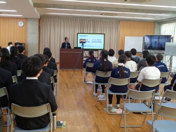 児童生徒会役員立候補者による立会演説会がオンラインで行われました。