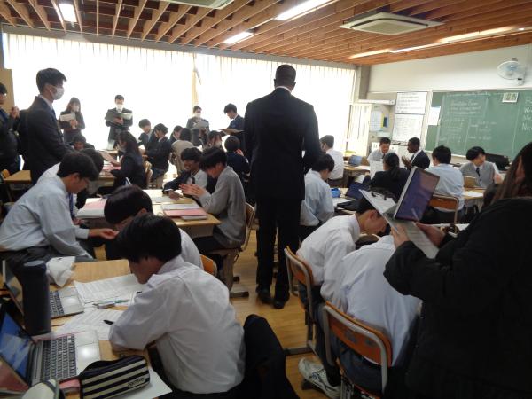8年生の学級で授業公開が行われ、国立教育政策研究所、つくば市などの教育委員会、つくば市の他校から多くの参観者が来校しました。
