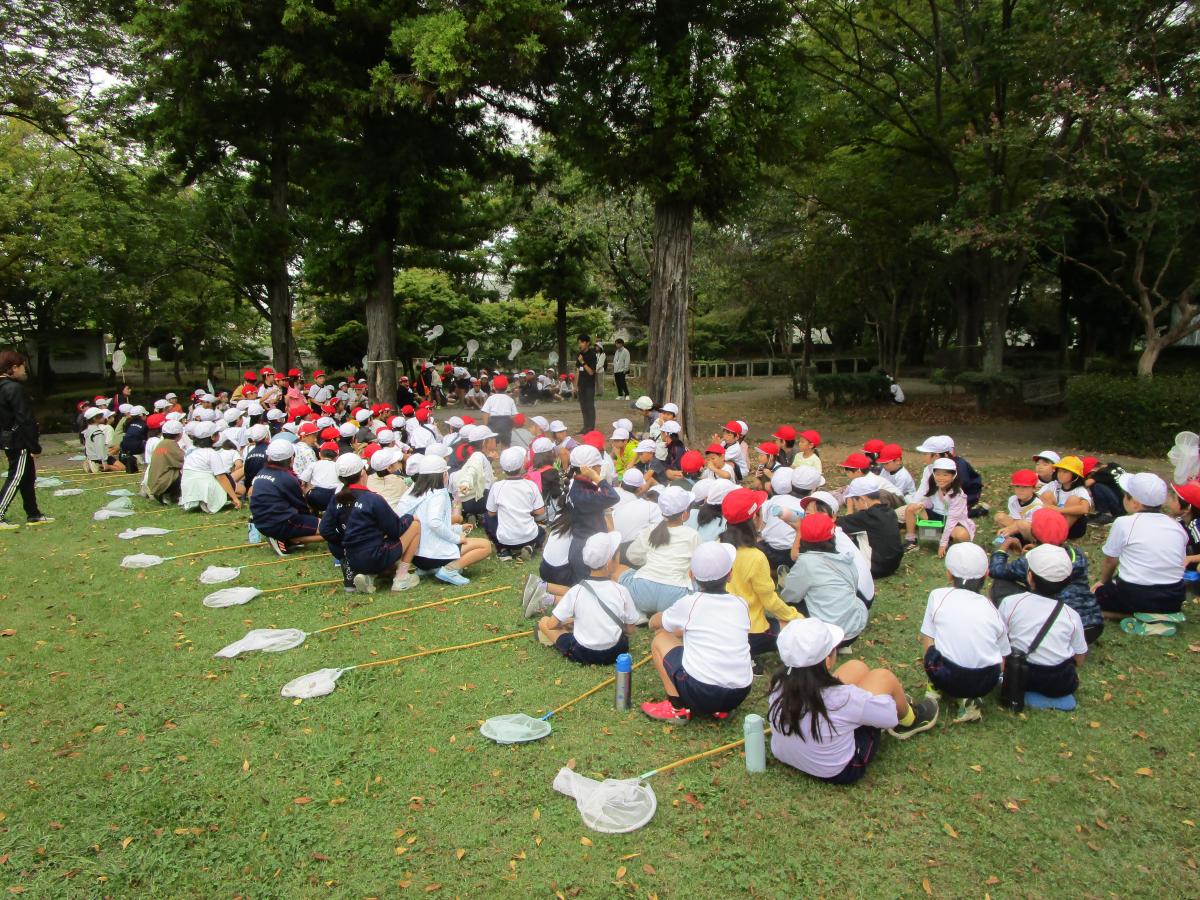 3年生が1年生に虫の捕まえ方を教えたり、手を引いて歩いたりと、温かい関わりがたくさん見られました。