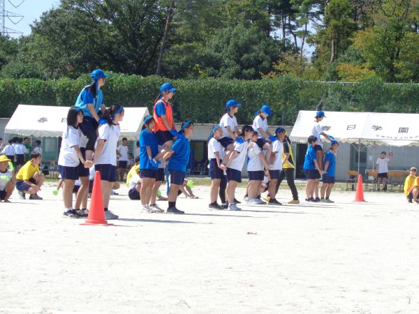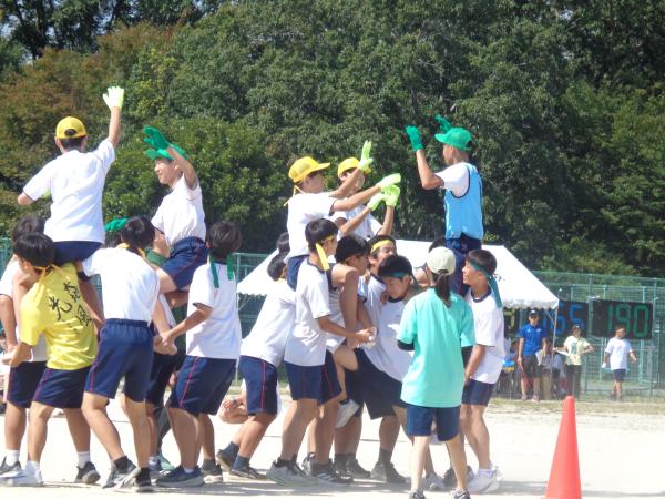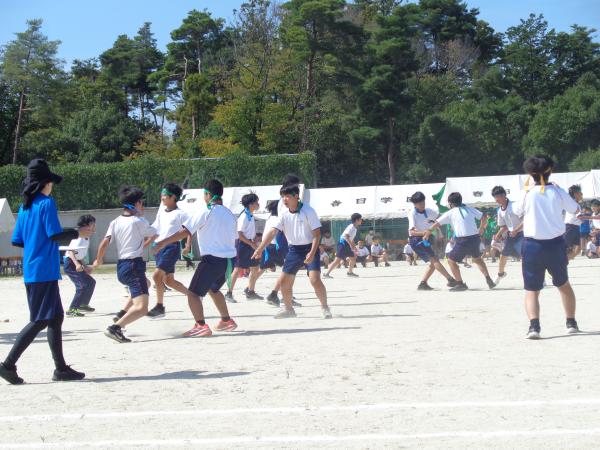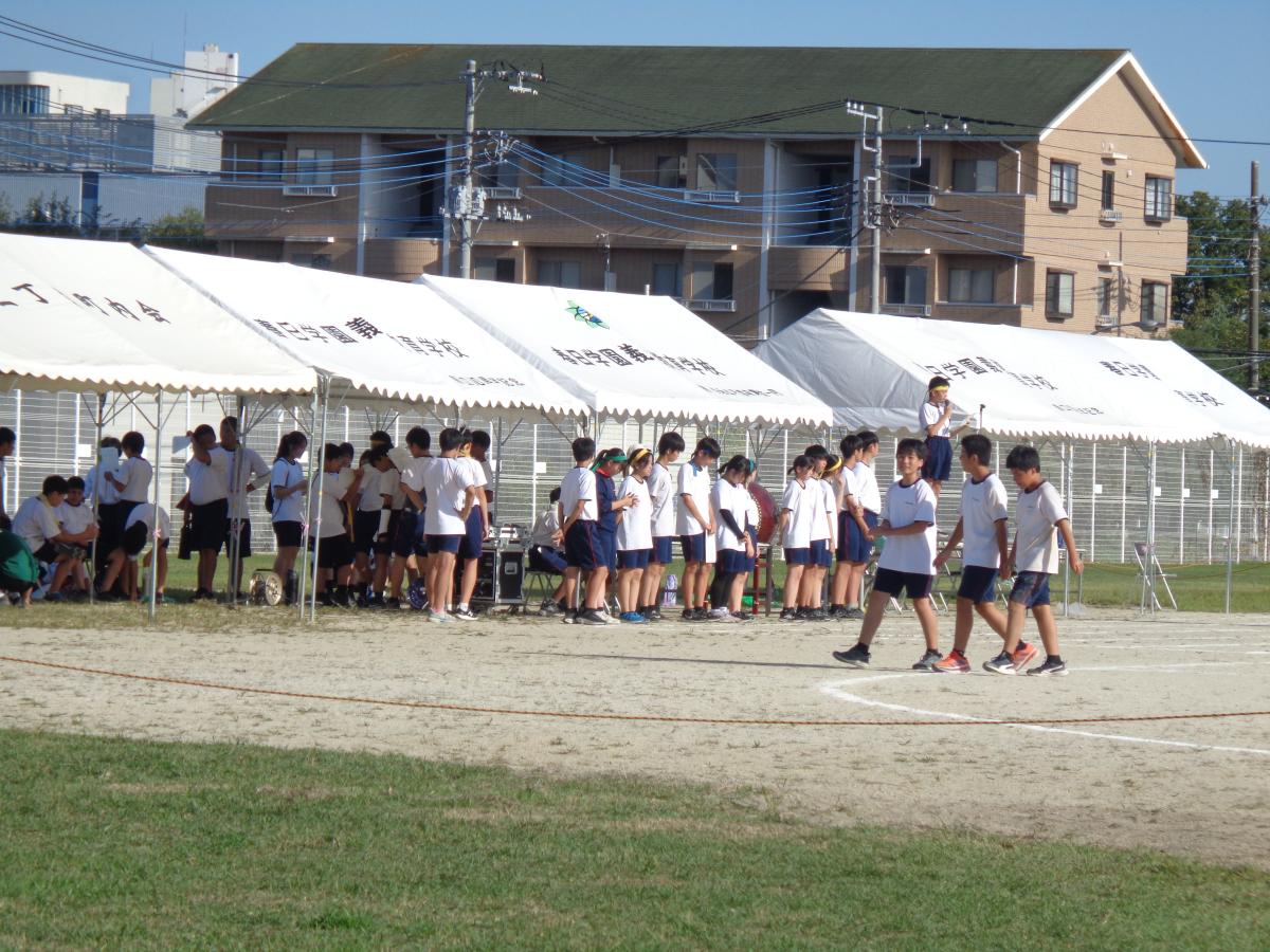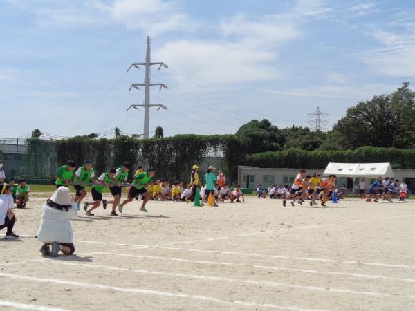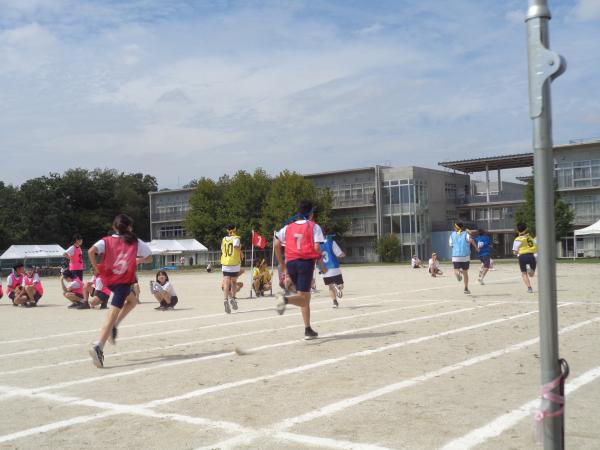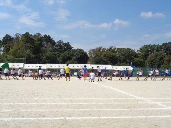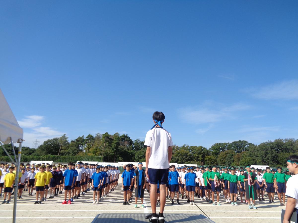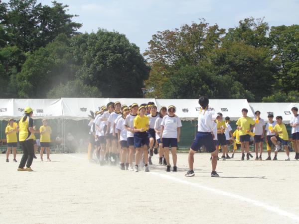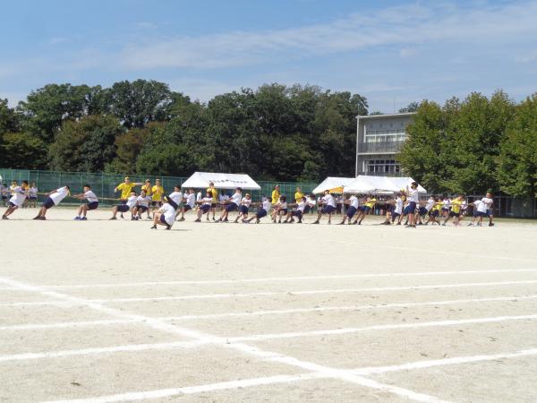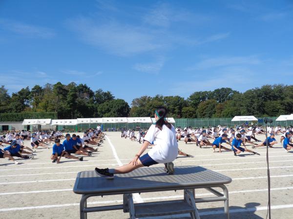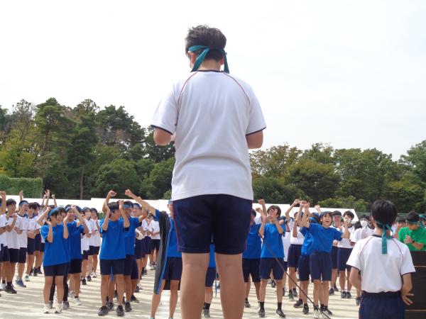 晴天の下、後期課程の体育祭の予行練習を行いました。