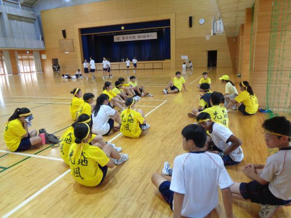 7年生から9年生が縦割り編成で、3年間をとおして同じ団に所属します。