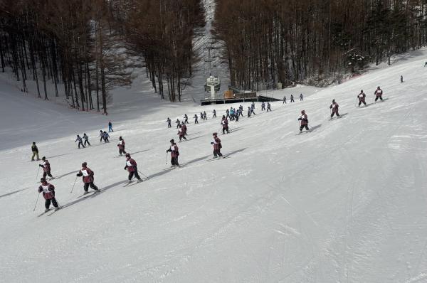 次々にリフトに乗り込み、隊列を組んで滑走するなど、滑走テクニックを急激に向上させました。