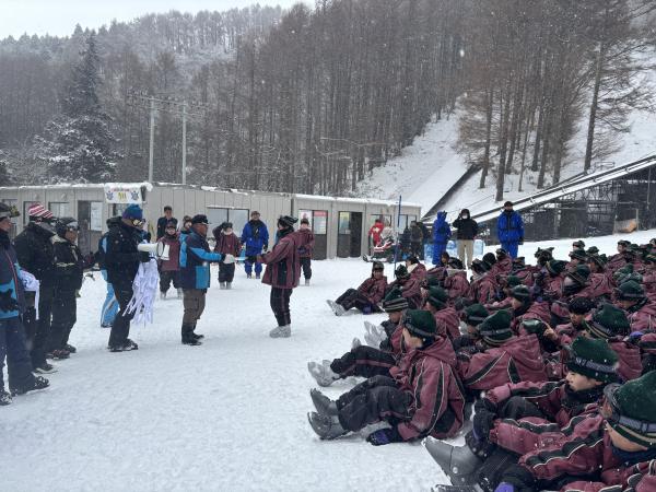 最後に閉講式を行いました。スキー宿泊学習実行委員長が代表して、修了証を受け取りました。