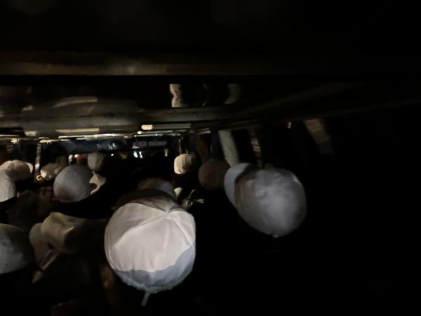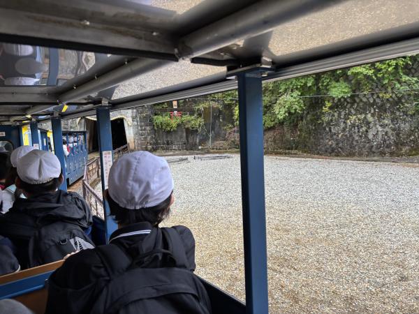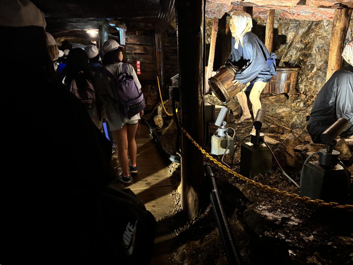 トロッコに乗って坑道に入っていきました。坑道に入って、少し立つと前方からジェットコースター級の悲鳴が上がりました。歩くよりも遅いスピードなのに。