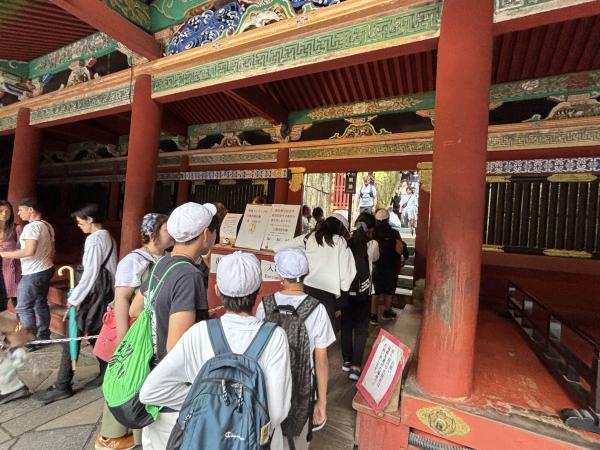 クラスごとに集合写真を撮ると、グループ行動スタート。陽明門をくぐり、多くのグループが、パワースポットに導かれるかのように、奥宮(徳川家康の墓)に向かいました。