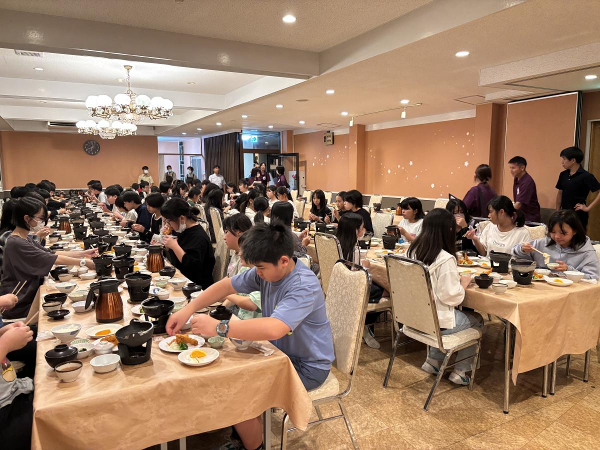 夕食では、日光の名物ゆばに「やっぱり出た」と言う声。たくさん歩いた日だったこともあり、多くの子がご飯をお代わりしました。