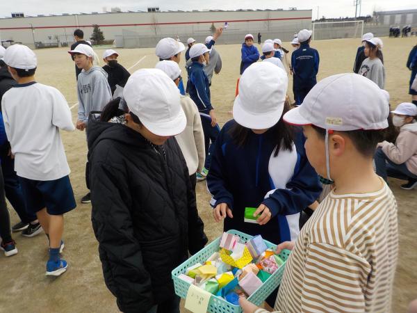 7組主催の学年レク、借り人競争がおこなわれました!「国語が好きな人」、「朝ご飯がパンだった人」、「担任の先生」など、みんなで楽しめる面白いお題がたくさんありました。クラスや性別を超えてお題の人を探すことでいつもと少し違った交流もできました。