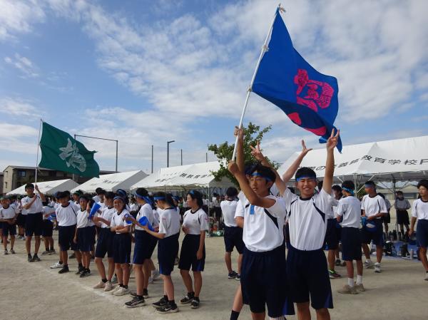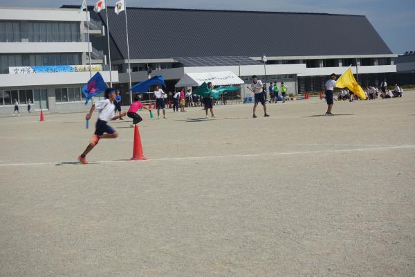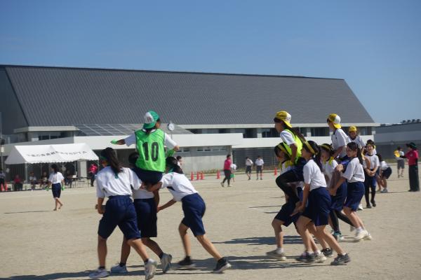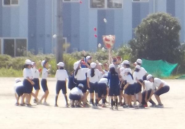 7・8・9年生の体育祭が終わり、今日から5・6年生の体育祭全体練習が再開しました。6年生は学級対抗親子種目として、玉の数ではなくタイムを競う玉入れを行います。今日は6年生と担任の先生で、入退場及び協議中のマナーの確認をした後で、練習試合を行いました。練習試合であっても1位になった学級は大盛り上がりでした。団だけではなく学級の団結力もどこまで高まるか楽しみですね。