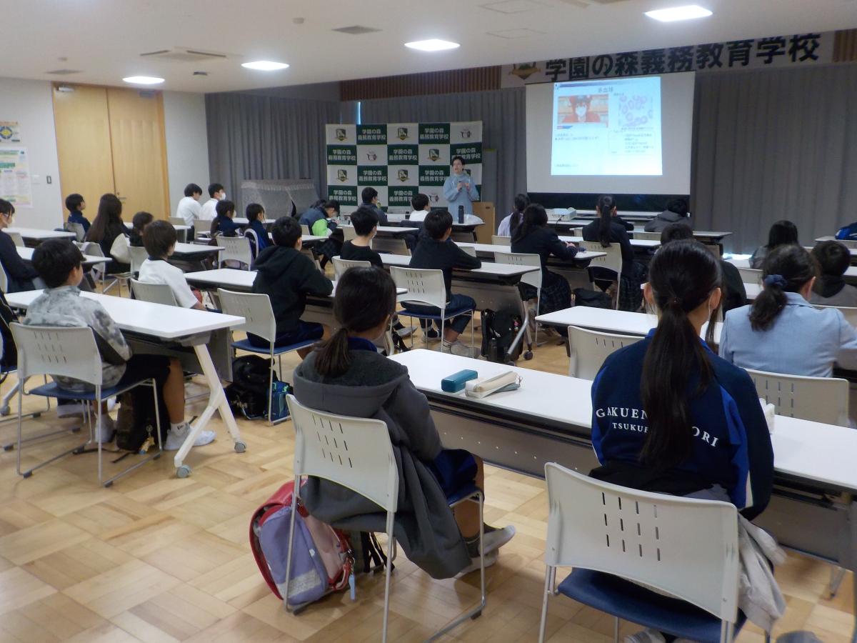 わたしたちの身体の健康を保つためにたくさんの細胞たちが「頑張って」いることを、漫画「はたらく細胞」を題材にした講義を受講しました。赤血球は血液1μL(1mm×1mm×1mmの立方体)に300~500万個含まれていることや、脳は体内の25%の酸素を使っている、など多くのことを学びました。また、今年度ノーベル賞を受賞した制御性T細胞についても学ぶなど、貴重な体験を得ることができました。