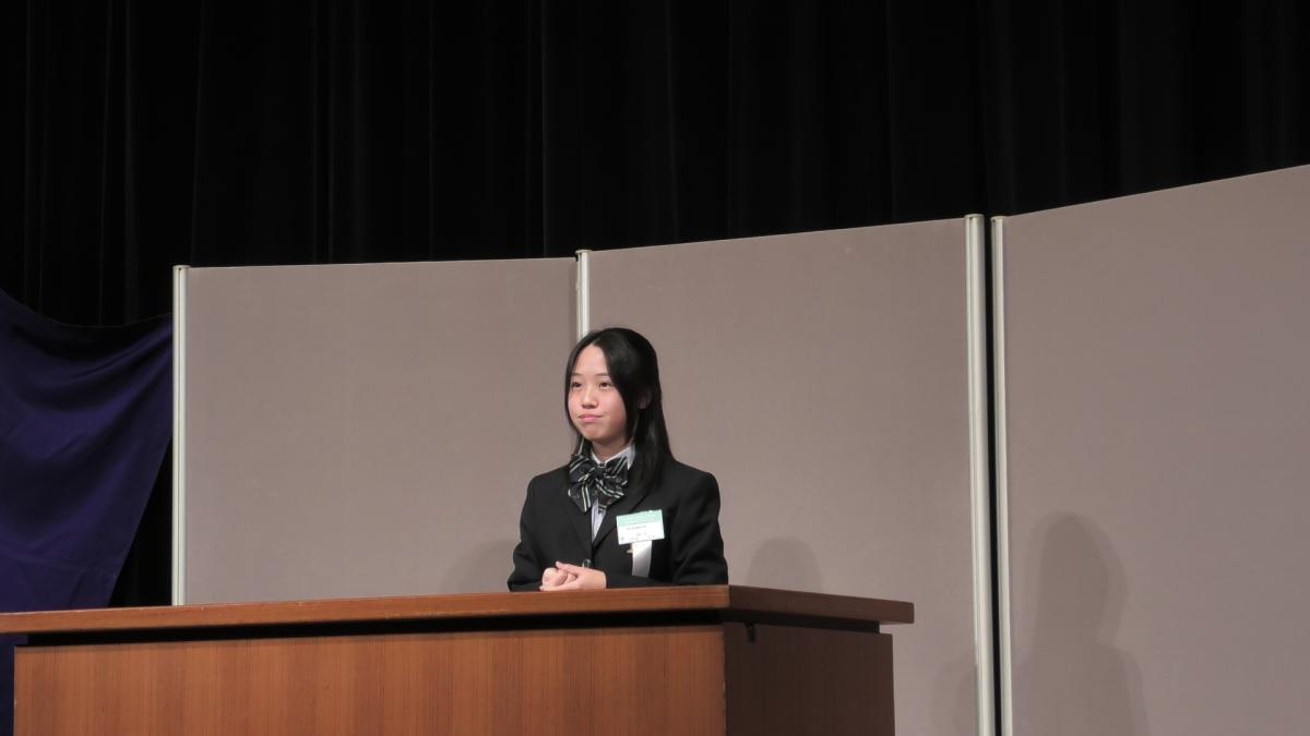 「今回のスピーチでは、『人生は無敵ではないからこそ意味がある』というテーマについて話しました。家族とテレビゲームをしていた時に感じたことがきっかけです。失敗や挑戦があるからこそ、喜びや達成感が生まれるということです。弁論大会を通じて、自分の言葉を人に届ける楽しさを改めて感じました。そして、ここまで準備する中で、先生方にたくさん助けていただきました。先生方が応援してくださったからこそ頑張れたし、大きな勇気にもなりました。本当に感謝しています。」