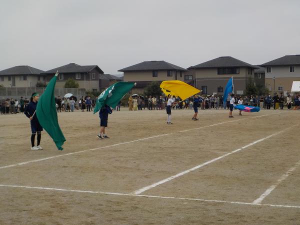 悪天候の中ではありましたが、5・6年生の体育祭が行われました。各団とも、雨にも寒さにも負けずに一生懸命取り組んでいました。これまでの練習の成果を発揮し、無事成功させることができました。雨天の中のご参観ありがとうございました。