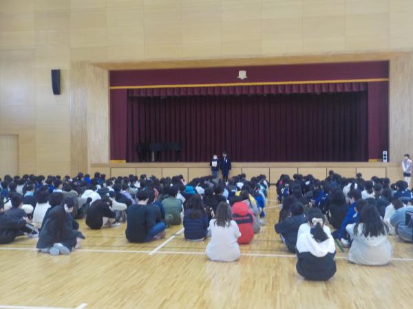 新しい年を迎え、学年での冬休み明け集会が行なわれました。体育館は寒かったですが、学園生が企画した立ったり座ったりジャンプするなどの身体を動かして答えるクイズのおかげで、身も心もあたたまったように感じました。今年は前期課程の最高学年になる年です。学習面・生活面ともに下級生のお手本となりたいですね。本年もよろしくお願いいたします。