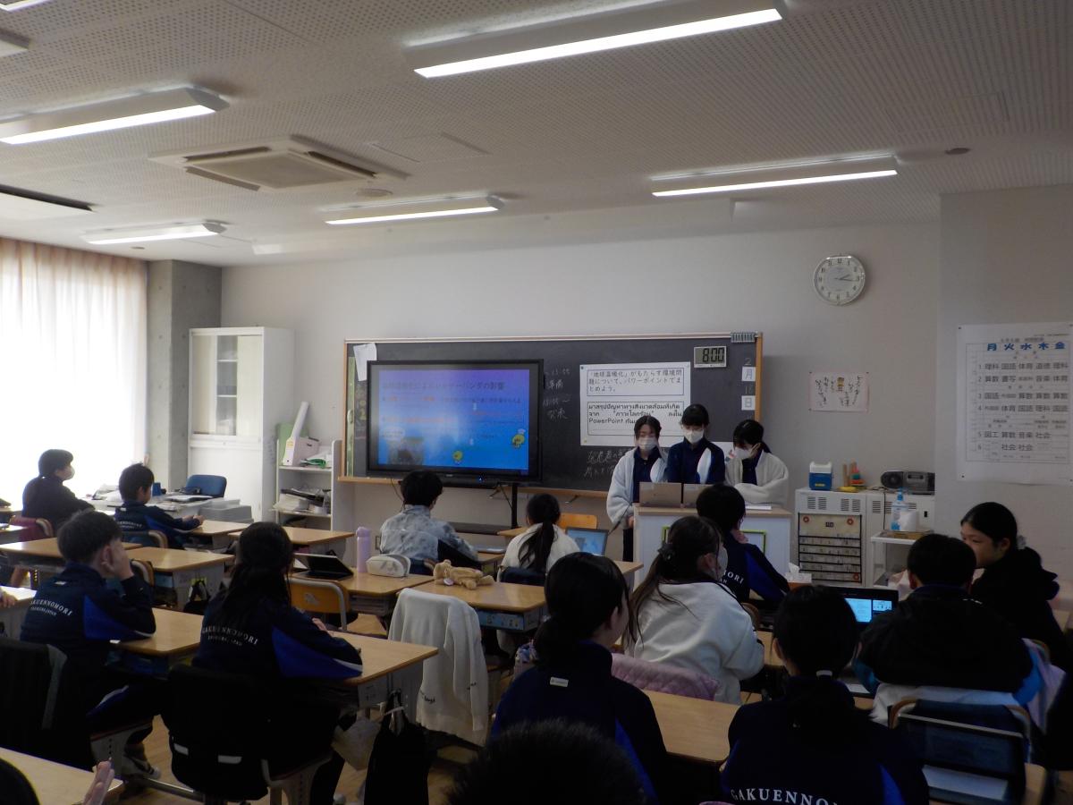 6年生は、つくばスタイル科の学習で環境問題について調べました。この環境問題は、国語や社会など6年生の学習で取り上げられる教科が多く、今回のつくばスタイル科の学習を活用して、教科横断的に学びました。学園生は数人のグループでテーマを決め、具体的な問題やその解決策など調べたことや自分たちで考えたことなどをパワーポイントにまとめ、プレゼン資料を作成しています。各グループの発表内容が楽しみですね。
