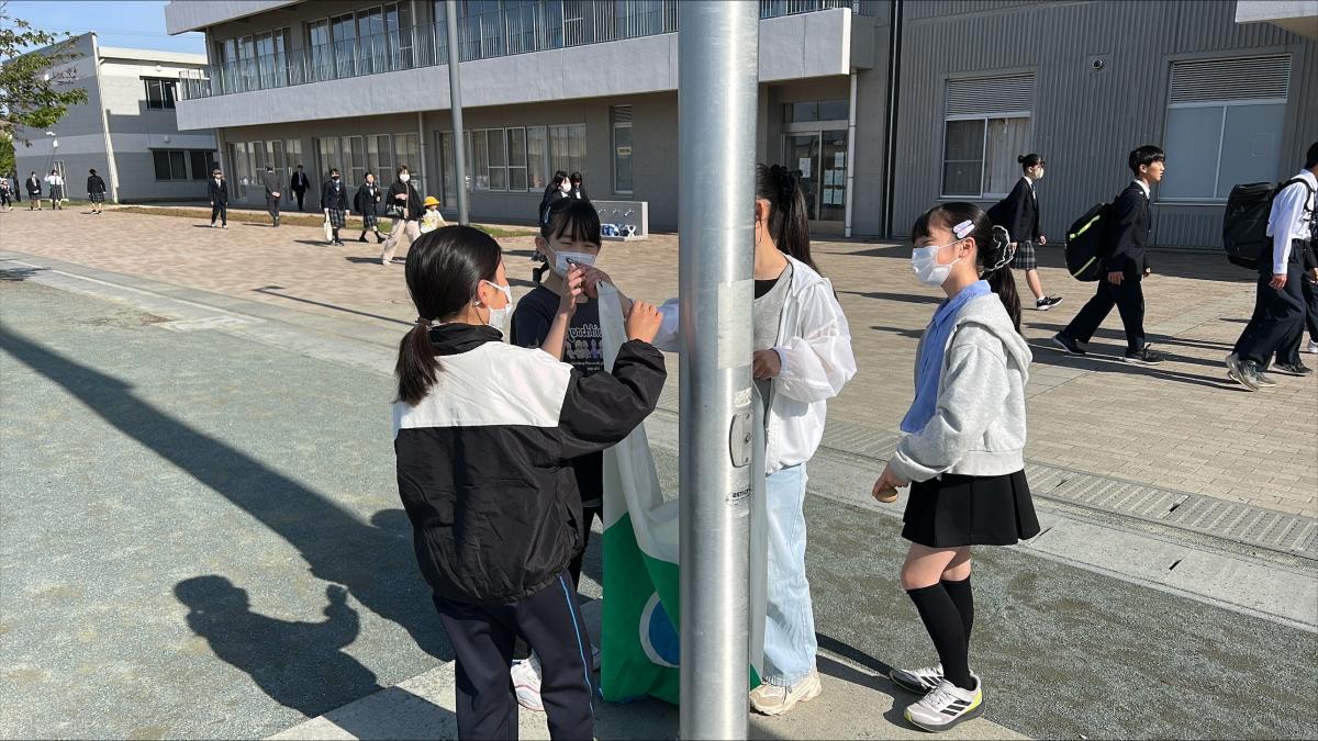 写真は、毎朝学校の代表として国旗を揚げる「学年委員会」の様子です。慣れない手つきながらも、丁寧に旗を扱う姿からは、高学年としての自覚と責任感が真っ直ぐに伝わってきました。