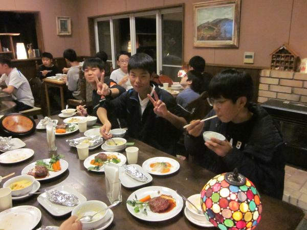 今年の宿泊先は先生とは離れて、男女クラス別で各ペンションに泊まりました。それぞれのペンションで生活の仕方は違います。生徒から聞いた話によると、ごはんはどこのペンションもとても美味しかったようです。
