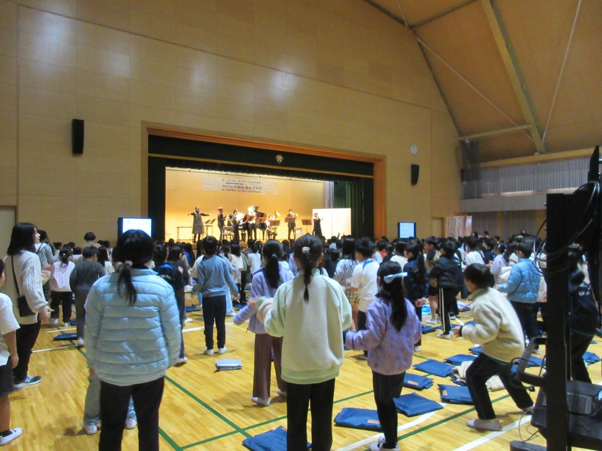 オーケストラの迫力ある演奏を聞いたほか、リズムに合わせて手拍子や足踏みをしてボディーパーカッションをしたり、校歌を歌ったりしてすてきなひと時を過ごしました。