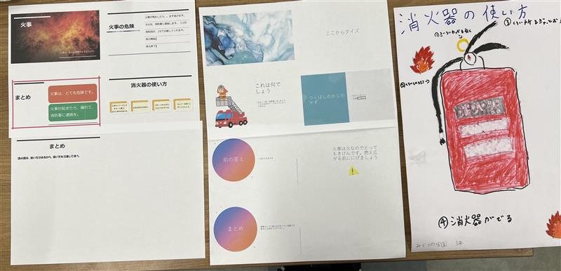 火災が起きた時には、119番に通報することや、いざとなったら消火器が使えるようにすることなどをまとめました。