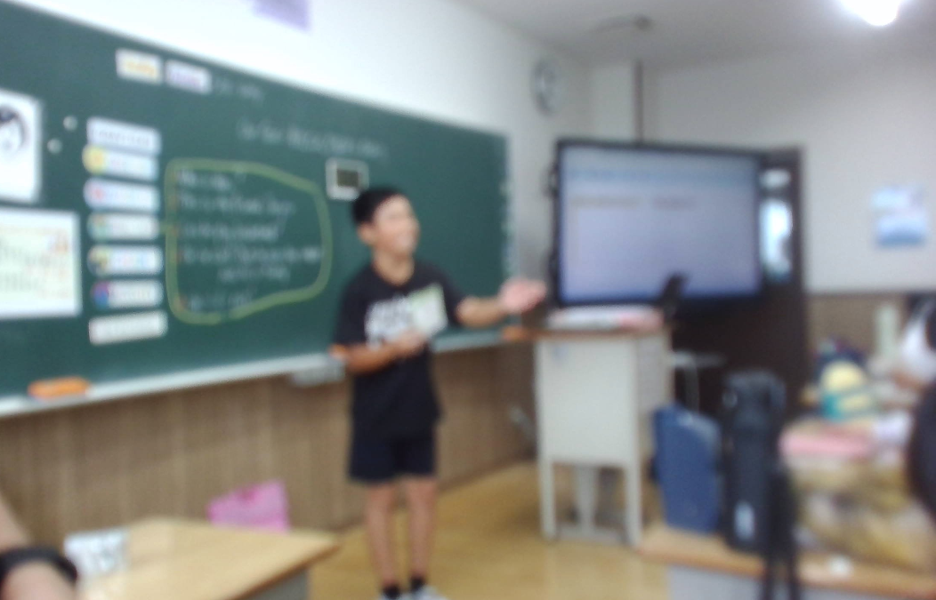 「She is kind.」や「He can play baseball.」など友達や家族を紹介するために言葉を覚えて、何度も練習をしていました。