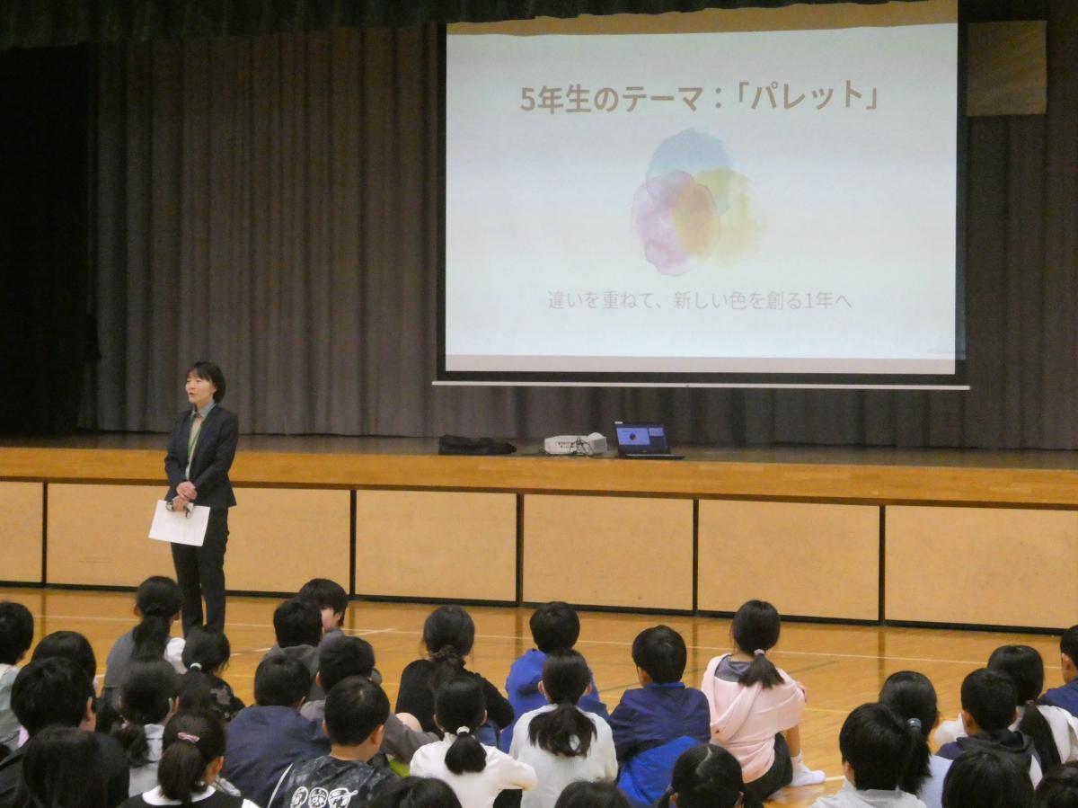 5年生の学年集会が行われました。 新しい教室に入り、いよいよ高学年としての生活がスタートしました。