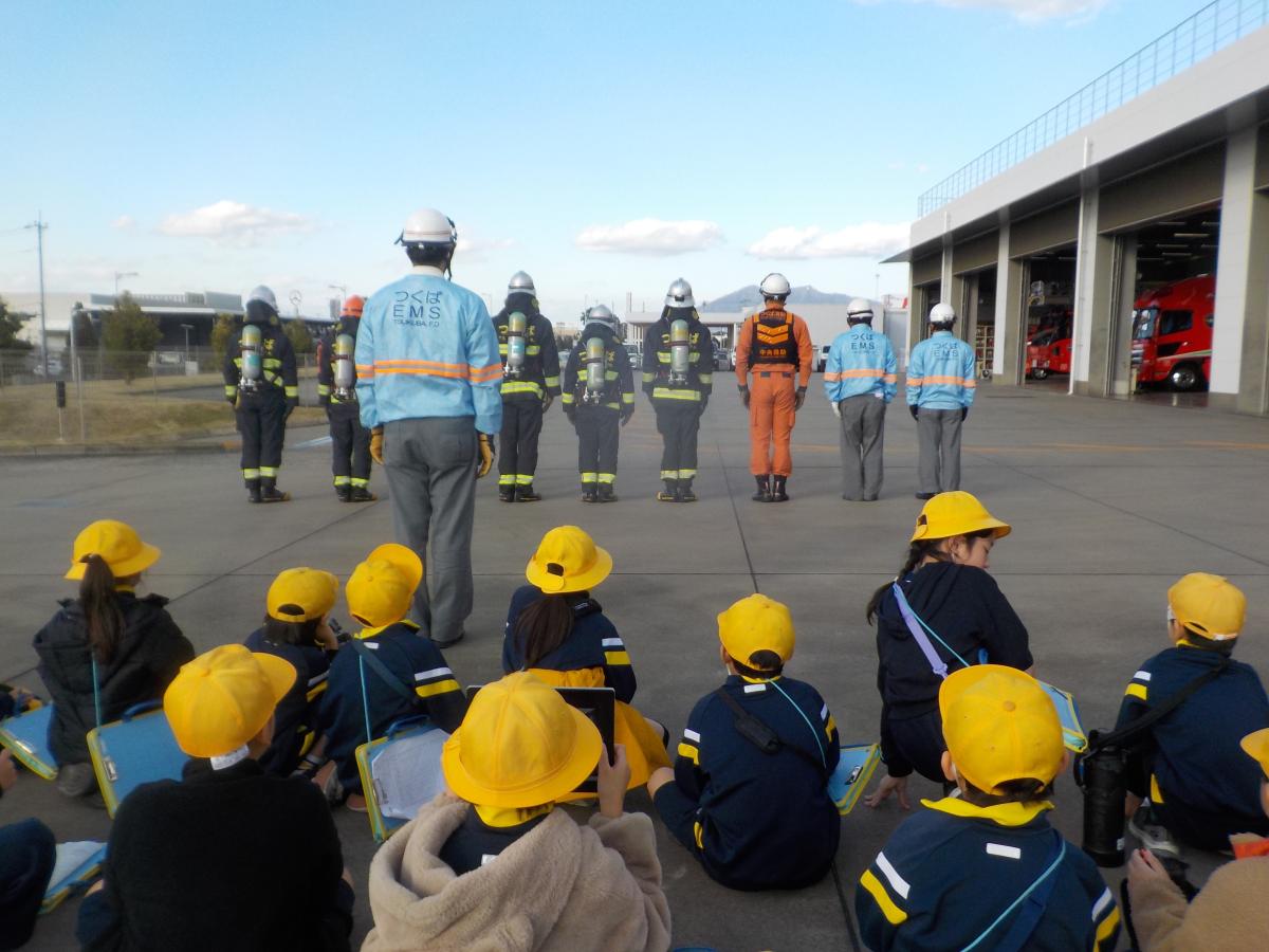 社会科の学習で、つくば消防署に見学に行ってきました。子どもたちは、日々の厳しい訓練の様子や、緊急の連絡を受ける通信指令室など、普段は見られない消防署の内部を見学させていただきました。火災や救助の現場で活躍する消防士さんの真剣な姿に触れ、命を守る仕事の重要さを学びました。