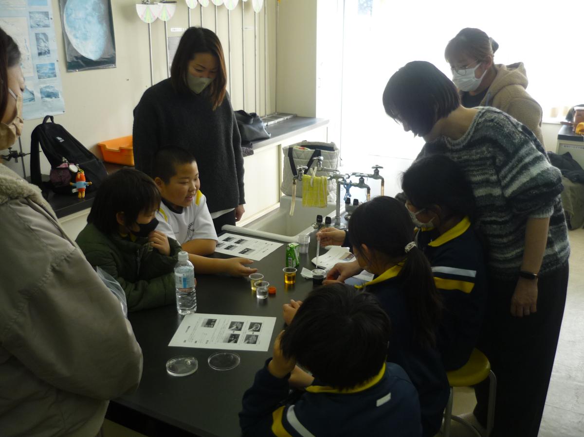 1月15日(木)の5時間目に3年生が親子レクとして、学校薬剤師 松本 里美先生を招いて「くすり実験」を行いました。親子で薬の正しい使い方について、実験を通して学びました。液体の色が変わったときに、親子で「わー」と驚きの反応。体験しながら薬を安全に使用するためのポイントを学べました。参加いただいた保護者の皆様、学校薬剤師松本先生、お忙しいところ、ありがとうございました。