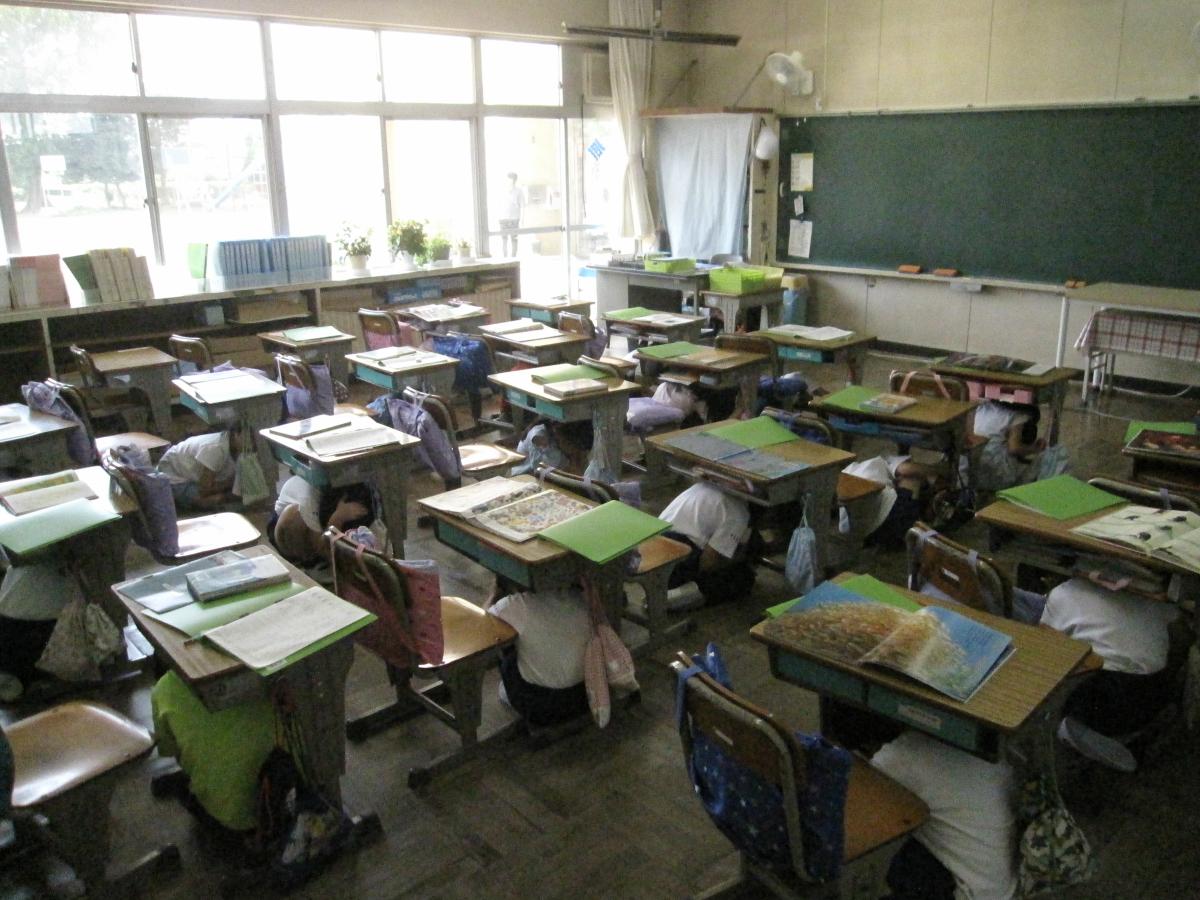放送を聞きながら指示に従い、地震から身を守るための行動をとる、というのがシェイクアウト訓練です。各学級にて実施されましたが、子どもたちは言われるまでもなく、静かに素早く机の下に身を隠すことができていました。終了後の振り返りでも、「お家でもやってる!」「いざというときのための勉強になりました」などという声が、子どもたちから聞こえてきていました。