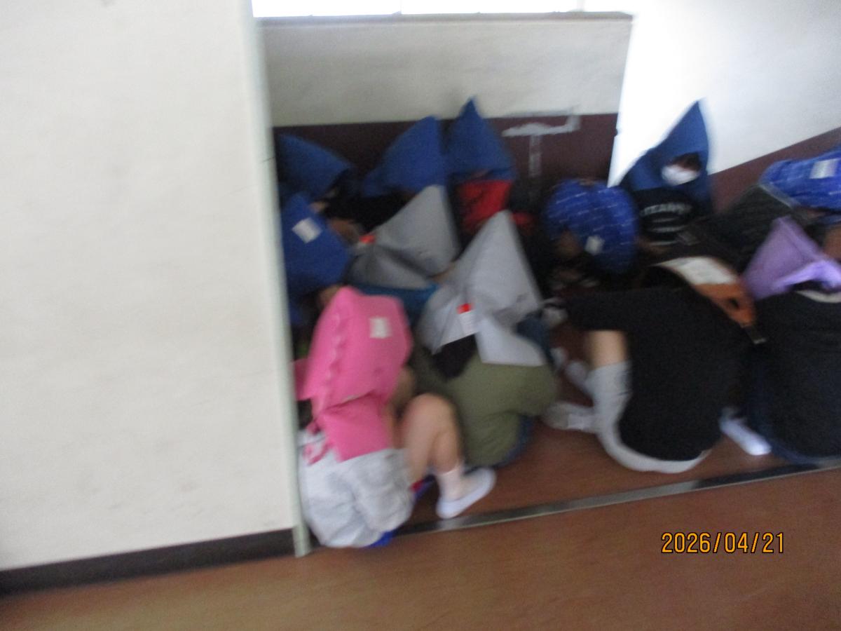 全校で竜巻が起きた時の避難訓練を行いました。自分の命を守るためには、どうすればよいか考え、一生懸命に取り組むことができました。災害はいつ起こるか分かりません。今日のことを思い出しながら、いざというときには慌てず行動してほしいと思います。