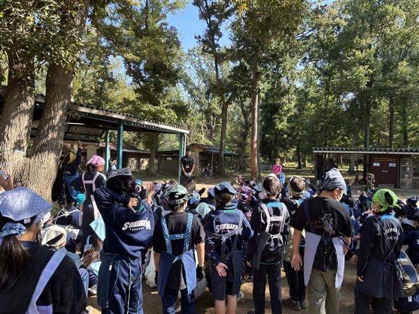 昨日作成した焼き板を持ち帰る準備をしています。 この後、野外炊飯活動が始まります。