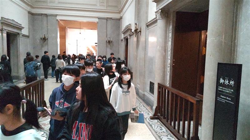 国会議事堂の見学が終わりました。写真は、天皇陛下の御休所の前です。