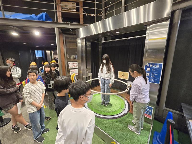 科学技術館でお弁当を食べて、班行動開始しました。シャボン玉に上手に入れるかな??