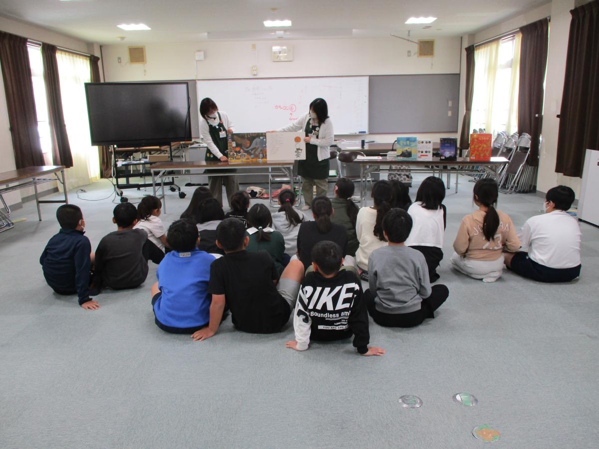 中央図書館から職員の方に来ていただき、ブックトークをしていただきました。「世界最大体長30メートル以上」というテーマで、10冊の動物に関係する本を紹介していただきました。子供たちはどの本にも興味津々で話を聞いたりクイズに答えたりしていました。今日紹介いただいた本の中から数冊学校図書館に入れてもらう予定です。ぜひ紹介してもらった本の続きを読んでみてください。