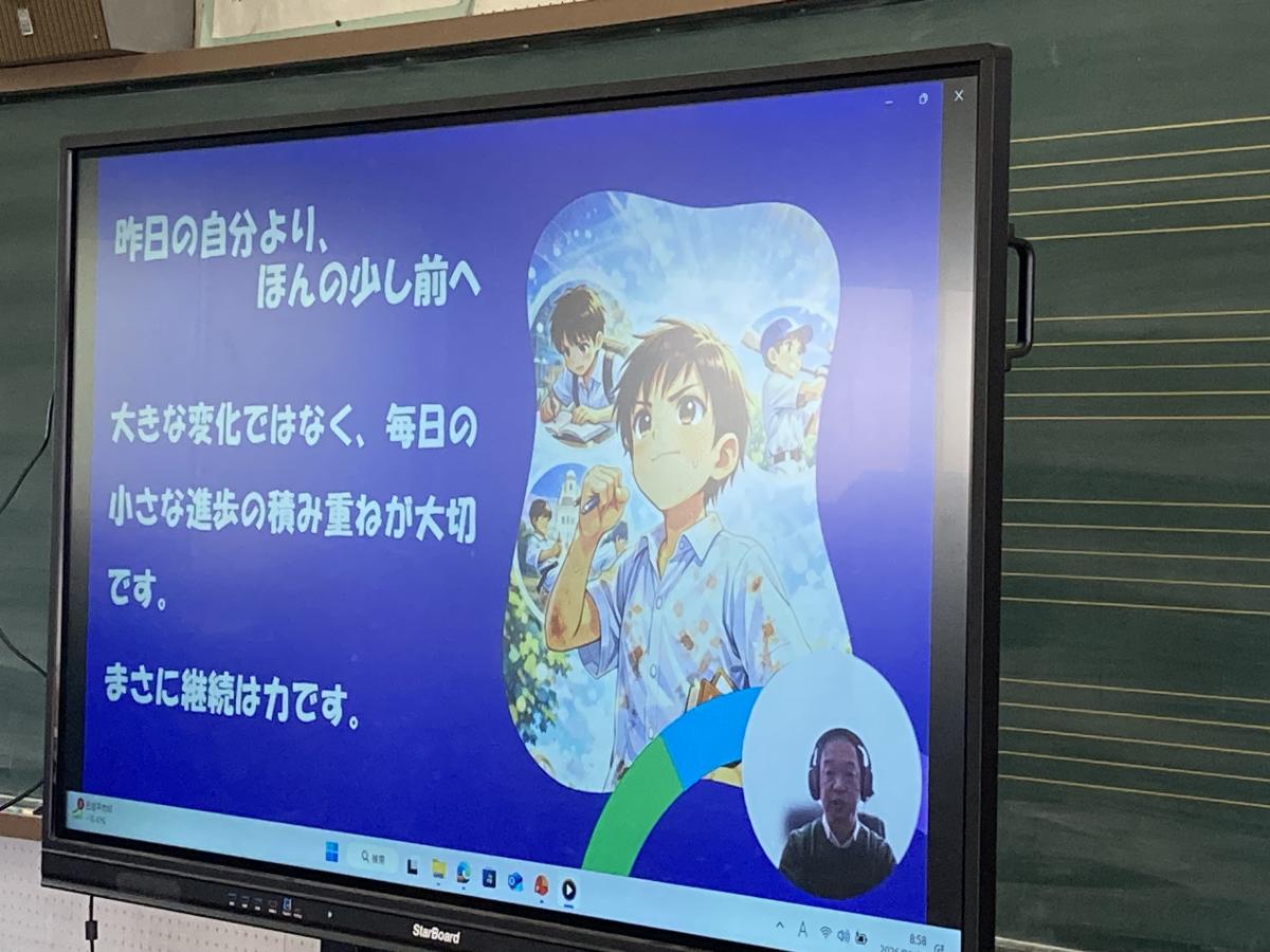 冬休みも終わり学校に子供たちの声が戻ってきました。先ほど、全校集会をオンラインで行いました。