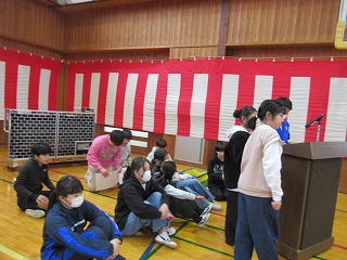 6年生のために5年生が中心となり準備してきた6年生を送る会が行われました。6年生の思い出クイズは、劇を交えたもので、たいへん盛り上がりました。1年生から5年生までが準備した贈り物やメッセージを渡す場面は、とてもいい時間でした。6年生はお礼に、「いのちの歌」を歌ってくれました。全員がとても上手に心を込めて歌ってくれました。6年生の皆さん、本当に今までありがとう。素晴らしいお別れの感動的な会ができる柳橋小は、とても良い学校です。