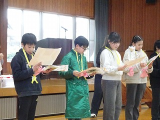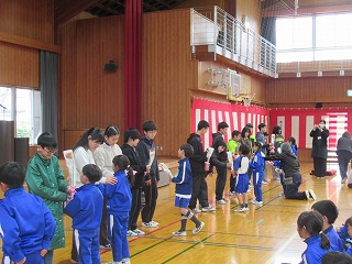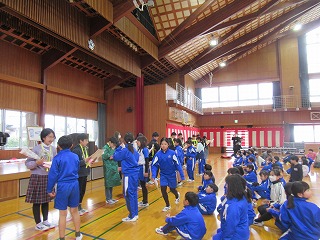 明日は継志式。6年生のために、午後は3年生から5年生までが、お掃除と式場準備をしました。隅々まできれいにするため皆が一生懸命働きました。下校集会では、代表児童が、「明日は6年生のためにいい継志式にしましょう」とあいさつしていました。明日はよい式になりそうです。皆様、どうぞよろしくお願いいたします。