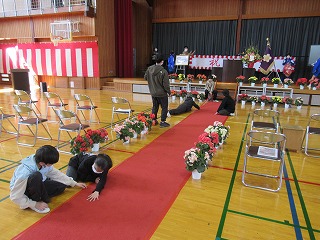 継志式の式場 3年生から5年生がきれいにしました