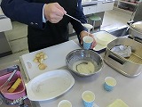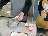 出来上がりを想像しながら、カップに生地を楽しそうに流し込む生徒の姿が印象的です。