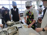 9年生は、家庭科の調理実習で、「蒸しパン」を作りました。