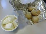 同時に、技術の授業で栽培した「じゃがいも」を蒸し器で蒸し上げました。