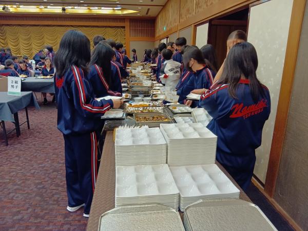 スキー合宿の食事の後で、自分たちで判断して食器をまとめているグループがありました。次第にきれいに片付ける班が多くなり、とてもよい傾向です。