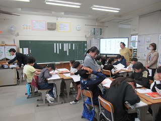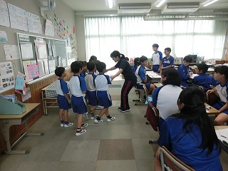 1年生は、6年生に全校遠足のお礼の手紙を書き、渡しに行きました。6年生が大大大すきというお手紙ばかりでした。2年生とはいつも体育を一緒にし、先日は一緒に万博記念公園に行って、木の実拾いと鬼ごっこを楽しみました。たくさんのお兄さんお姉さんに囲まれ、1年生はのびのび成長しています。